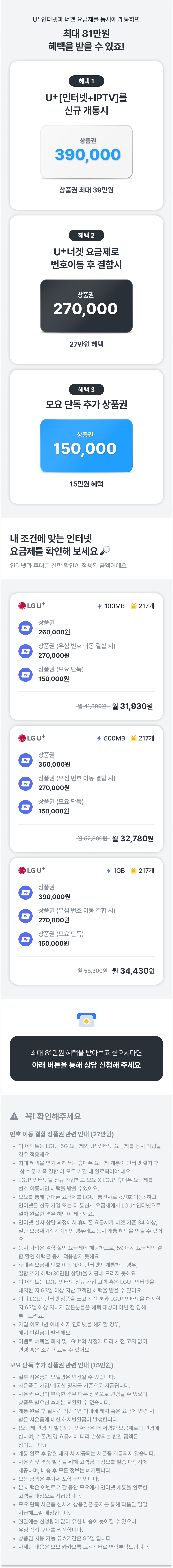 대상 : 기간 내 모요에서 인터넷/IPTV 신규가입과 U⁺ 모바일로 번호이동 후 참쉬운가족결합 완료한 고객