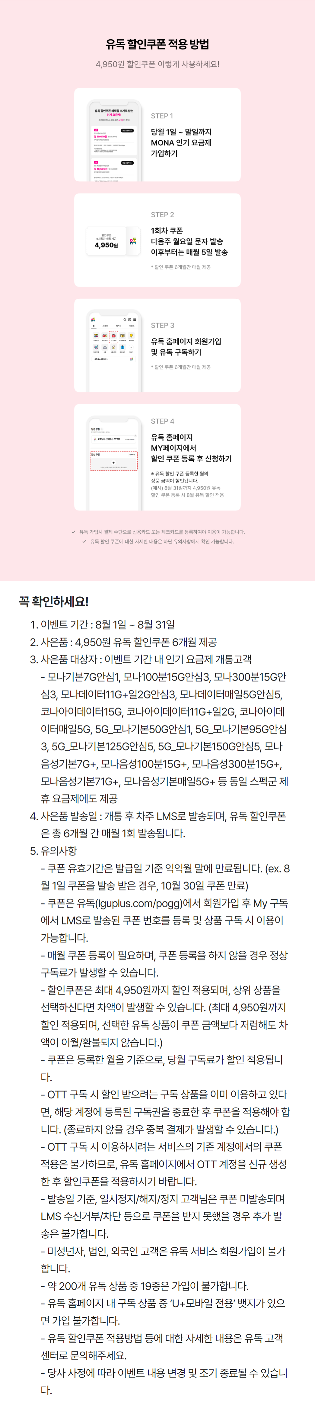 대상: 기간 내 모나 이벤트 대상 요금제를 개통한 고객