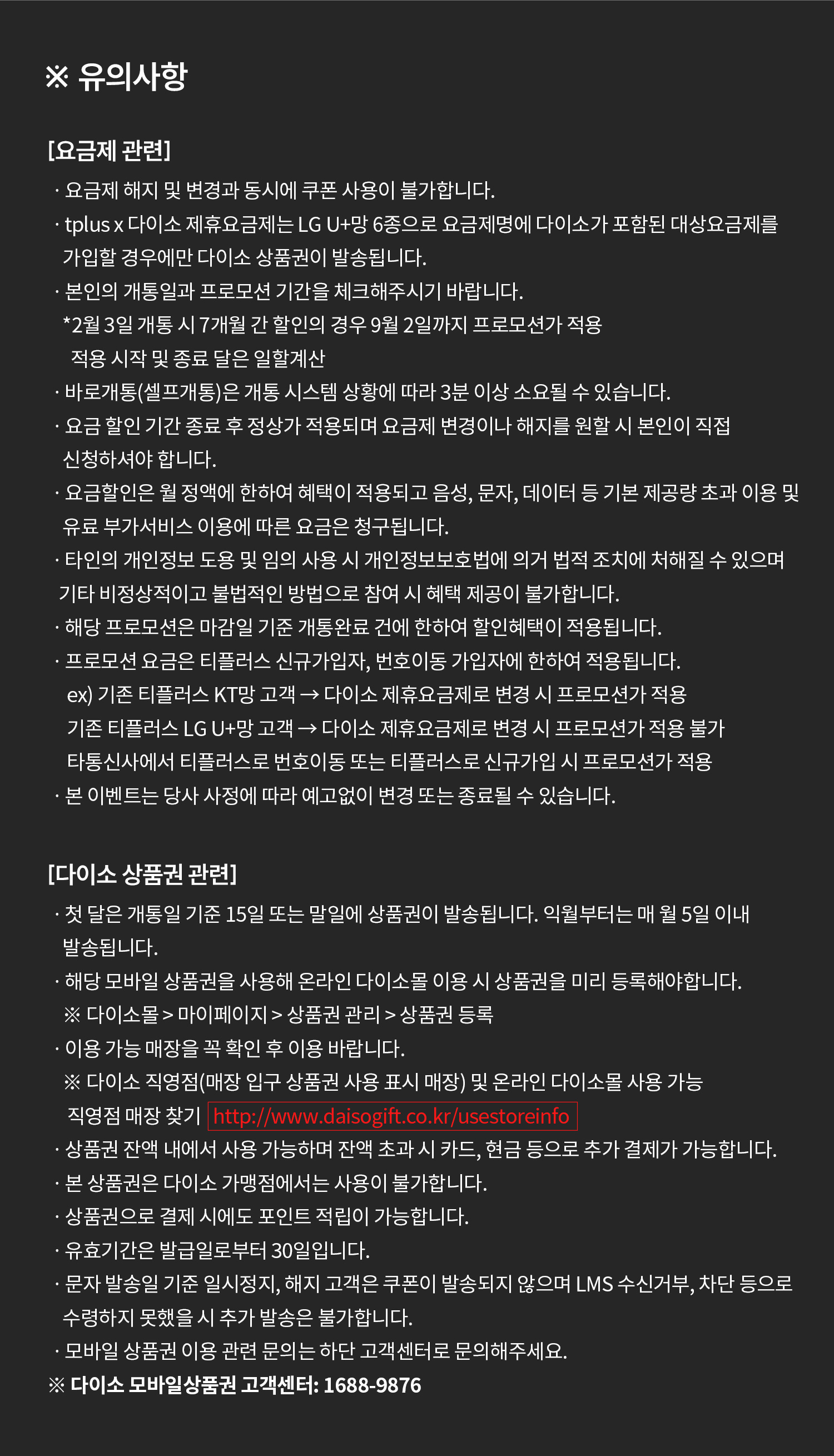 The 데이터마음껏15G+(300분)(다이소 매월 4000P)