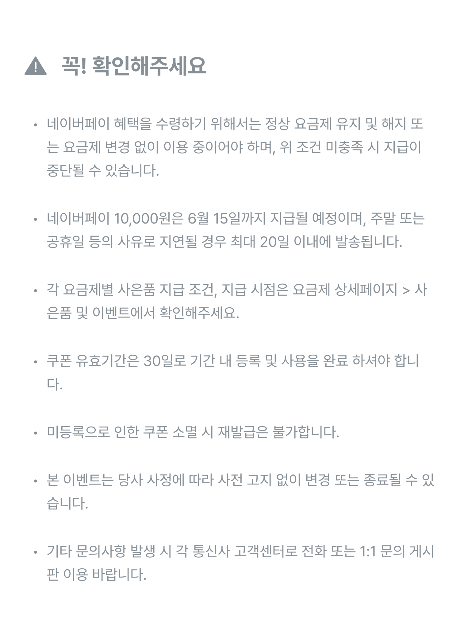 U+ 멤버십 VIP콕(24개월 간 매월 제공)