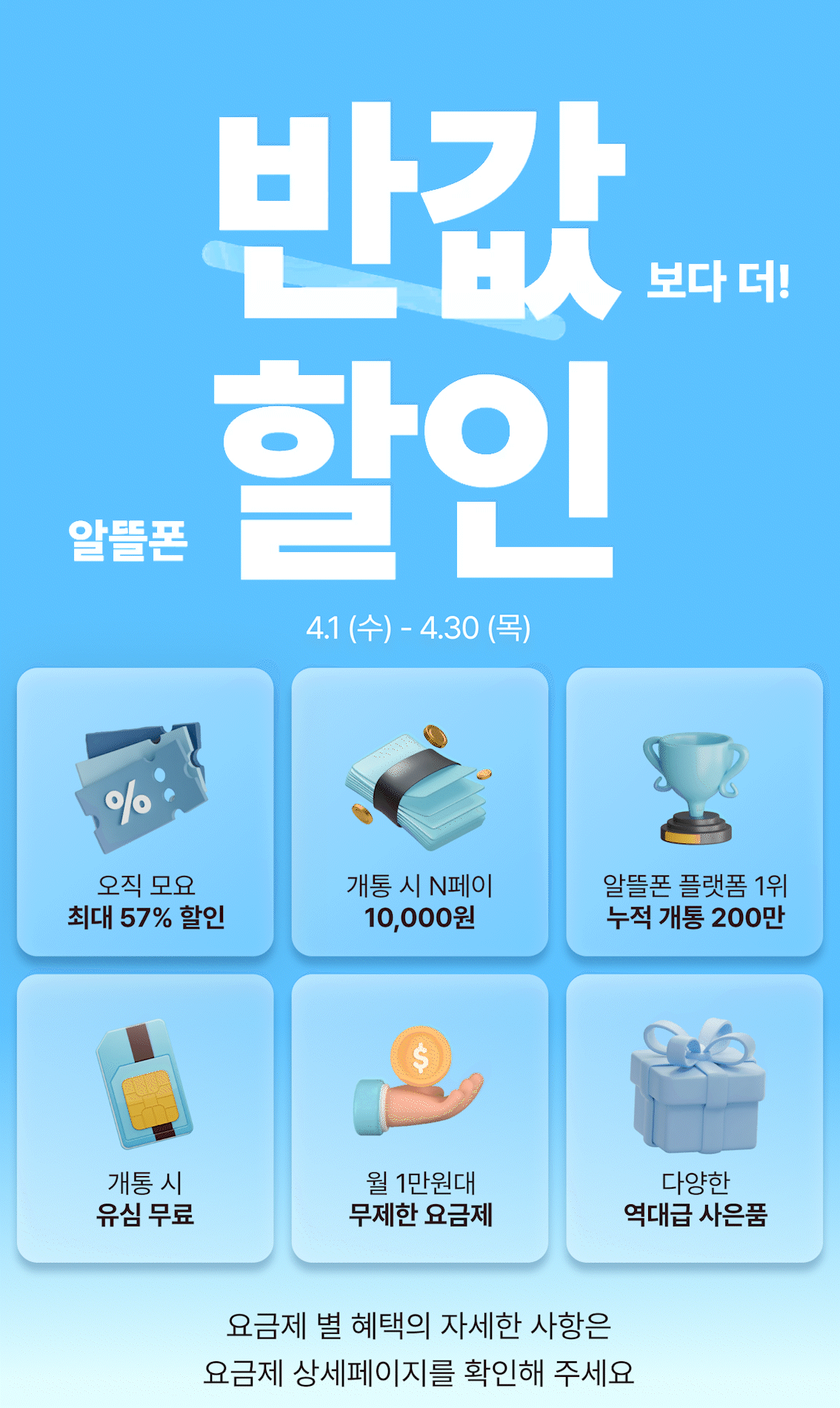 [모요핫딜]LTE 무제한 100GB+5M(CU20%할인)_4월