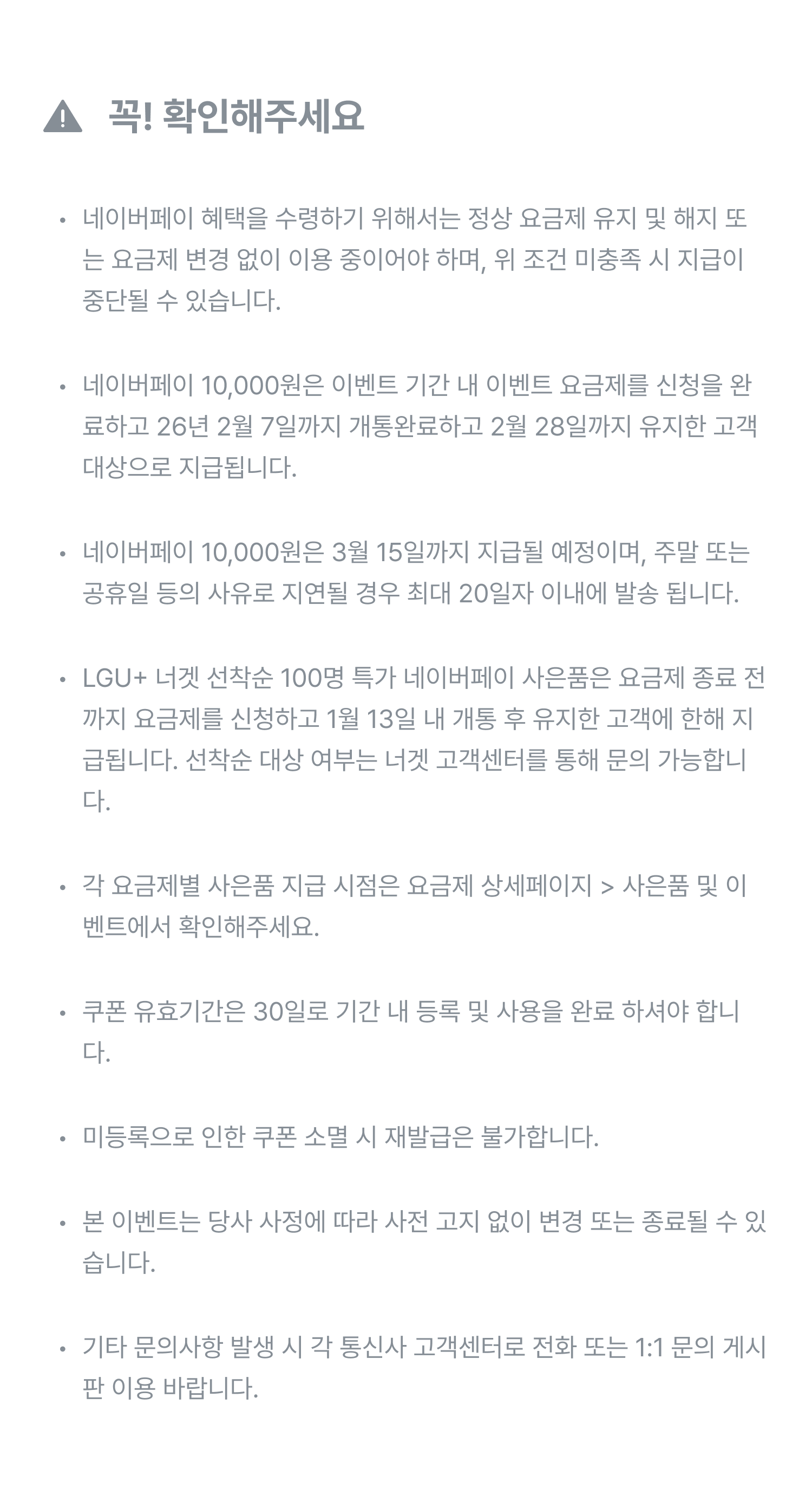 [선착순 100명] 개통 시 네이버페이 포인트 15,000원