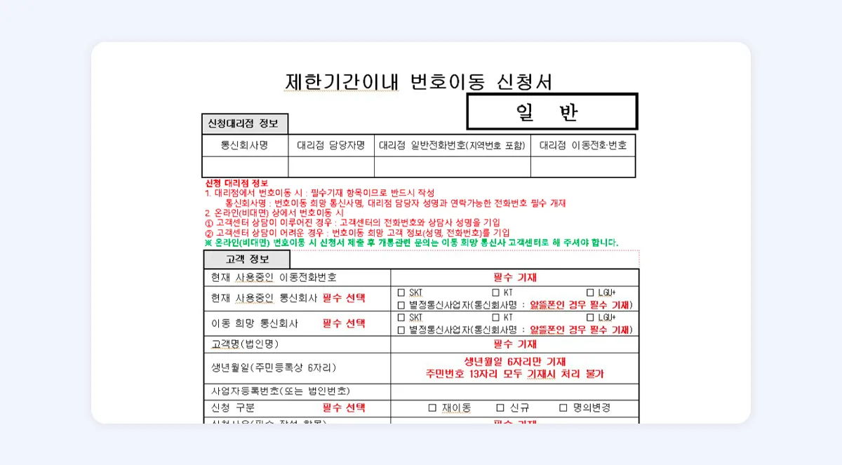 번호이동 신청서 다운로드 바로가기