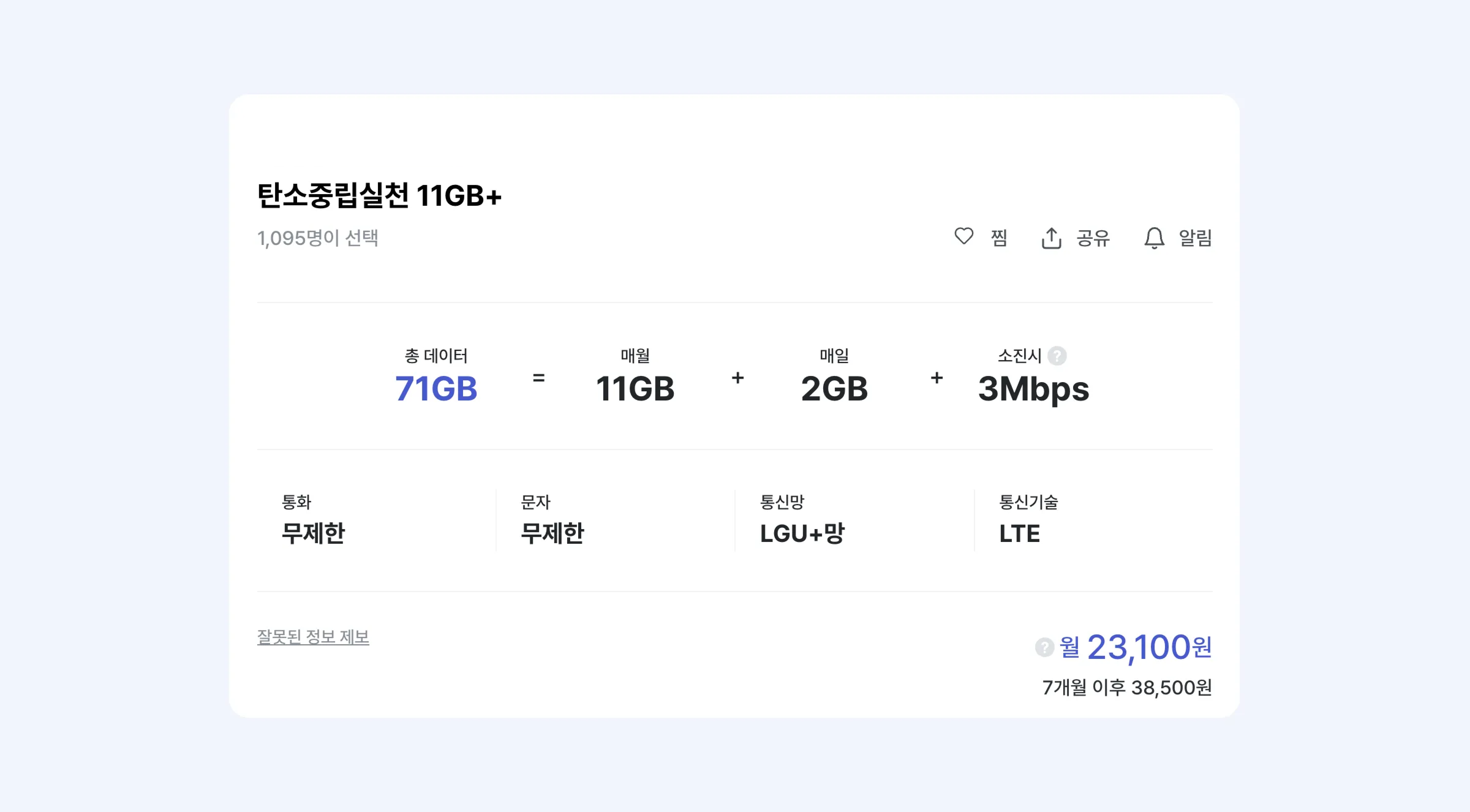 새 알뜰폰 통신사 : 스마텔 23,100원 요금제